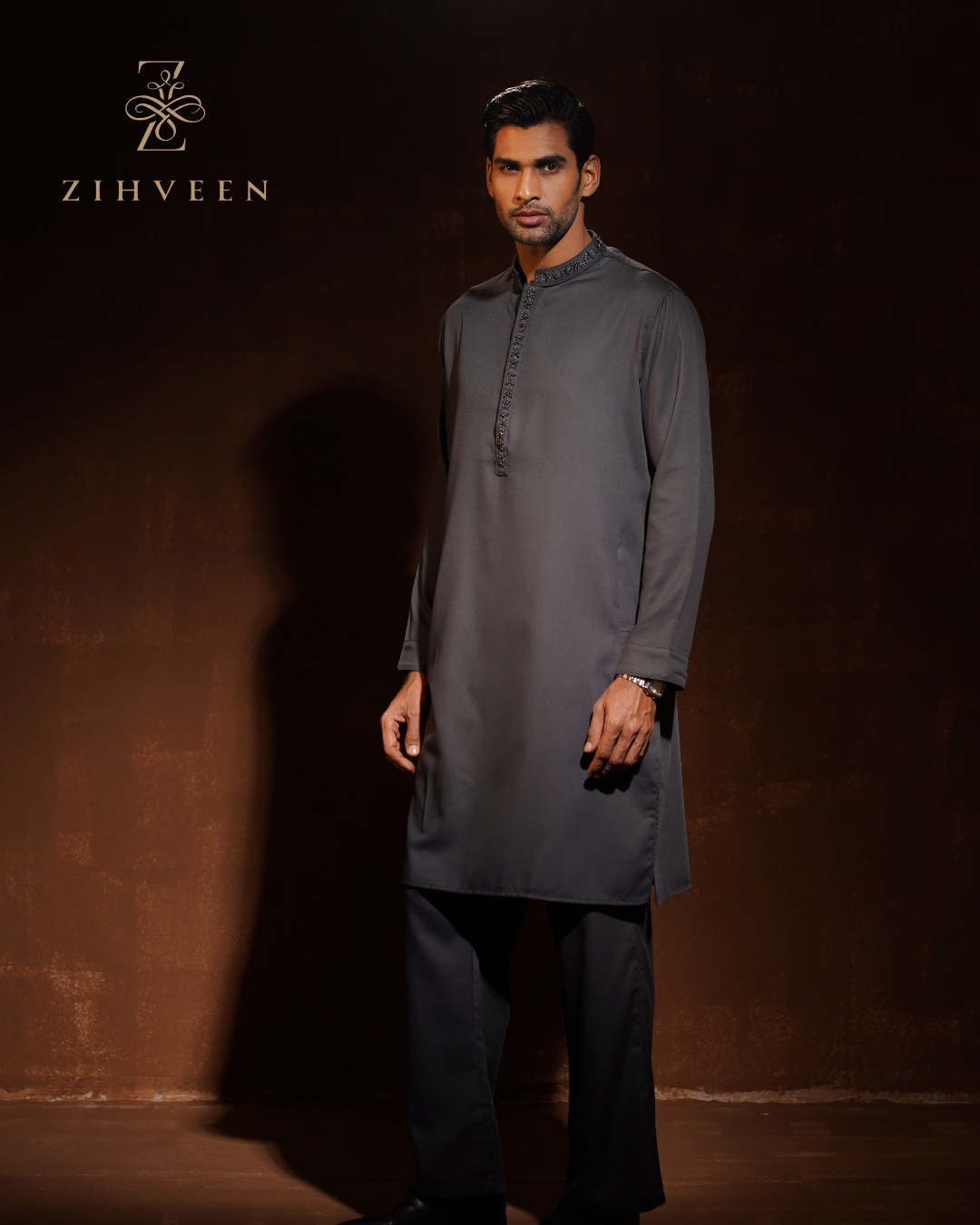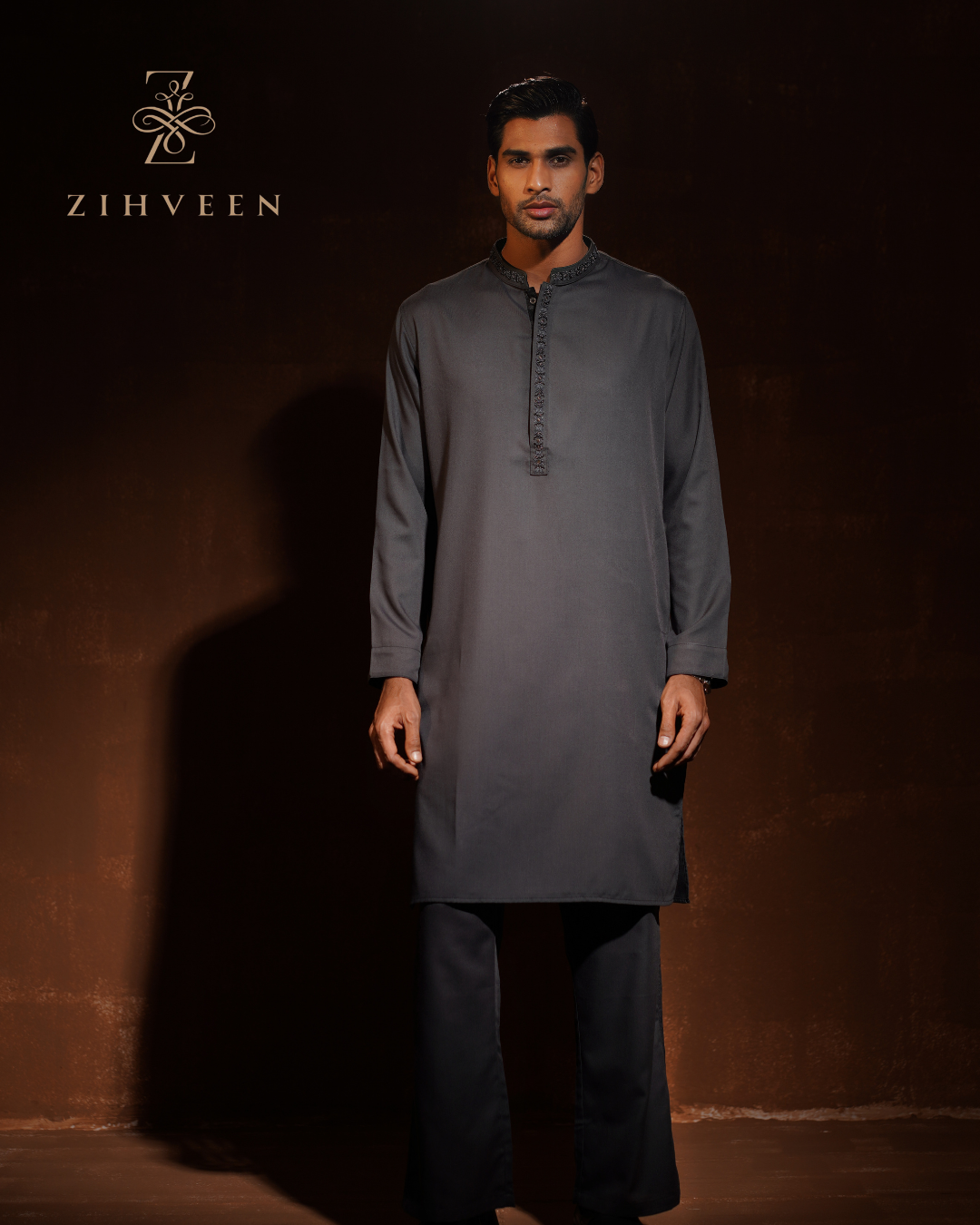 Paynes Gray with Elegant Collar and box plate Zardoji Co-ords set